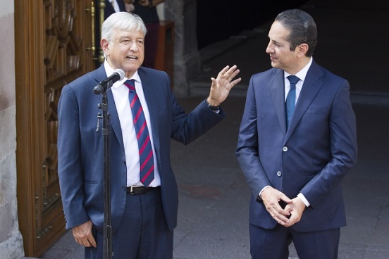 El presidente electo, Andrés Manuel López Obrador, sostiene una reunión privada con el gobernador de Querétaro, Francisco Domínguez Servién, en el Palacio de Gobierno de la entidad.