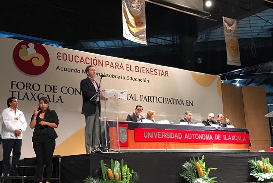 Al término del Foro de Consulta Estatal Participativa, Por un Acuerdo Nacional sobre la Educación, que se realizó en la Universidad Autónoma de Tlaxcala, Moctezuma Barragán señaló que entre las principales propuestas que se han recibido son acerca de las condiciones de las escuelas, la falta de material, la formación, capacitación y actualización del magisterio.