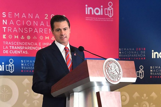 En su discurso inaugural de la Semana Nacional de Transparencia 2018. Trascendencia e impacto de la transparencia y rendición de cuentas, destacó que ahora los mexicanos tienen derecho a conocer información de los Poderes Legislativo, Ejecutivo y Judicial.