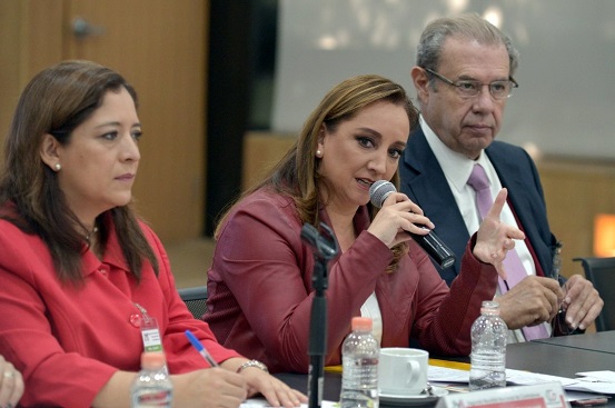 En el salón «Alfonso Reyes» de la sede priista, la también senadora estuvo acompañada de la contralora general, Lisbeth Hernández Lecona; del presidente de la Comisión de Ética Partidista, José Antonio González Fernández, y de la secretaria adjunta a la Presidencia, Guadalupe Gómez Maganda.