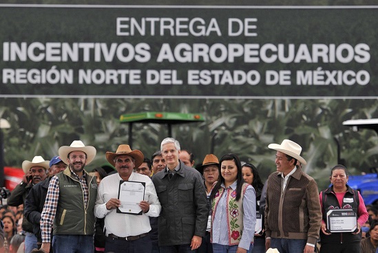 En beneficio de más de mil 700 productores del campo, el Gobernador Alfredo Del Mazo Maza entregó incentivos agropecuarios, como tractores, invernaderos, cultivadoras e infraestructura agrícola, los cuales, con una inversión cercana a los 55 millones de pesos, permitirán a los agricultores reducir el tiempo de las jornadas que cada día realizan, además de mejorar sus cultivos y elevar su producción.