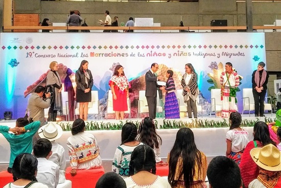 En el evento se premió a 40 profesores y a 50 niños de quinto y sexto de primaria y migrantes, entre ellos Marcela Rosales Ángeles, de Comonfort, Guanajuato, quien en su lengua hñahñu, habló de la forma en que su dialecto la acerca a sus antepasados, así como de lo orgullosa que se siente al ser una de las pocas niñas en el país que hablan una lengua indígena.