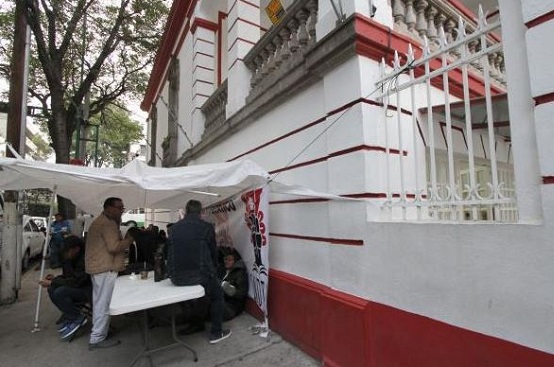 Los afiliados al Sindicato Nacional Democrático de Trabajadores de la Secretaría de Cultura (SNDTSC), permanecen instalados bajo una lona a un costado de la casa de transición haciendo guardia y en espera de una respuesta de quienes serán las próximas autoridades.