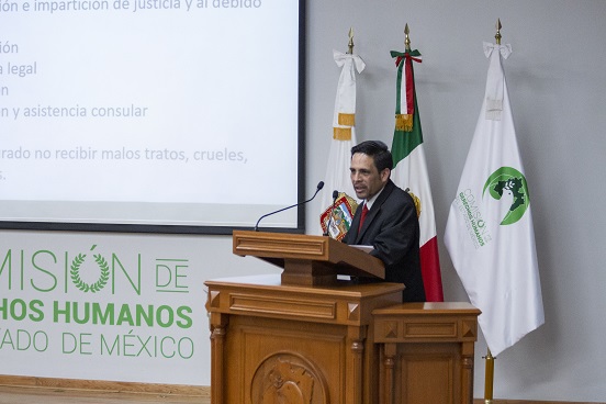 Ante servidores públicos de la Comisión de Derechos Humanos del Estado de México y alumnos de la Universidad Politécnica del Valle de Toluca, detalló que México recibe cada año 24.4 millones personas extranjeras; la mayoría de los migrantes indocumentados provienen sobre todo de los países del “Triángulo del norte”, conformado por Honduras, Guatemala y El Salvador, ya que sólo el 30% tienen documentos en regla.