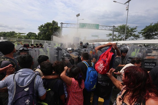 Se han topado con una valla de la Policía Federal que a pesar de recibir agresiones con piedras por parte de esta caravana, han logrado hasta el momento contener a los que intentaban pasar libremente por la frontera. El Comisionado General de la Policía Federal Manelich Castilla los invitó a calmar los ánimos para poder ser recibidos en albergues dispuestos para ellos.