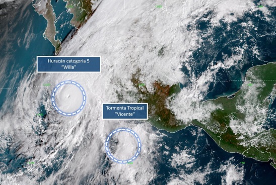 Willa y Vicente originarán tormentas intensas en Nayarit, Jalisco, Colima, Michoacán y Guerrero; tormentas muy fuertes en Sinaloa y Durango, y tormentas fuertes en Baja California Sur.