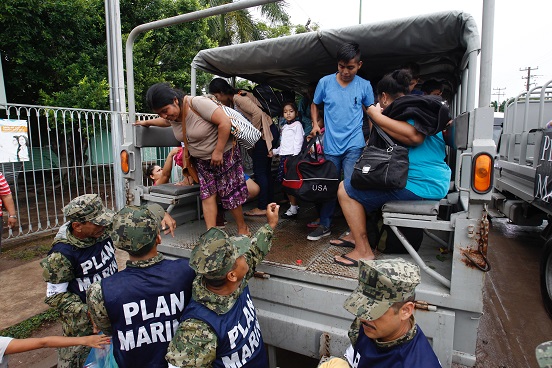 «Hemos desplegado 11 albergues, hubo cierta renunencia de la gente por salir de sus casas, pero se hizo labor de convencimiento con el apoyo de las autoridades de los tres órdenes de gobierno y se les convenció de que abandonen las zonas de alto riesgo», anotó el oficial naval.
