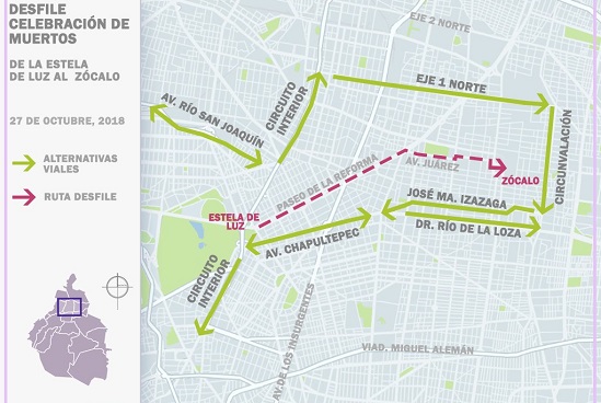 La Secretaría de Seguridad Pública (SSP) de la Ciudad de México ofrecerá a la ciudadana alternativas viales al recorrido del Desfile Celebración Día de Muertos, que se llevará a cabo el 27 de octubre sobre avenida Paseo de la Reforma.