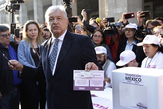 El presidente electo, Andrés Manuel López Obrador, acudió a emitir su opinión respecto a la construcción del nuevo aeropuerto y aseguró que esta consulta ciudadana se llevará a cabo con legalidad, honestidad y limpieza.