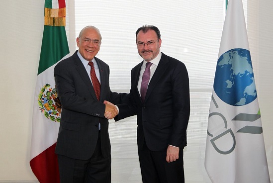 El canciller Luis Videgaray se reunió con el secretario general de la Organización para la Cooperación y el Desarrollo Económicos (OCDE), José Ángel Gurría, para hacer un balance de los resultados de la cooperación entre México y el organismo durante el gobierno del presidente Enrique Peña Nieto.
