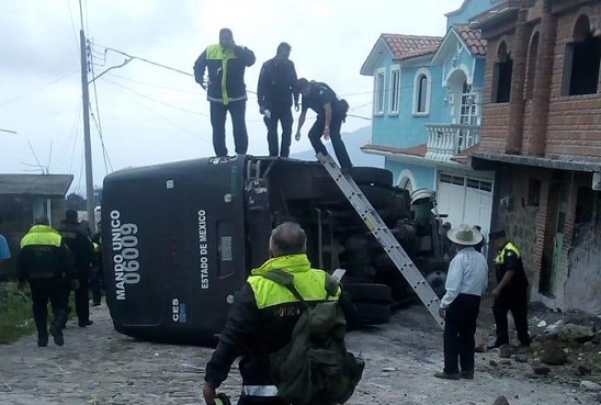 La volcadura de un autobús de la Secretaría de Seguridad Pública del Estado de México en la carretera Capulín-Chalma, dejó siete elementos lesionados y uno fallecido.