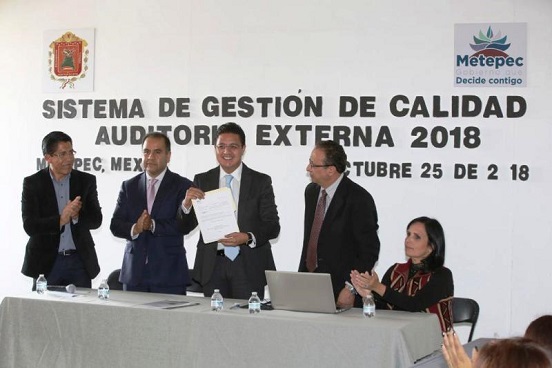La certificación de ISO 9001:2015, se entrega a empresas y organismos de la iniciativa privada o servicio público, que cumplen con estrictas normas de calidad en los procesos y servicios ofrecidos a la ciudadanía, por lo que la certificación coloca al gobierno municipal de Metepec, como una administración comprometida a cumplir con altos estándares de calidad a nivel internacional.