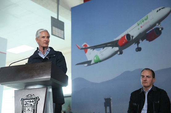 Al asistir a la puesta en operación de los vuelos Toluca-Monterrey y Toluca-Cancún, en el Aeropuerto Internacional de Toluca “Lic. Adolfo López Mateos” (AIT), por parte de la aerolínea Viva Aerobús, el Gobernador Alfredo Del Mazo Maza señaló que su administración será respetuosa de la decisión que tome el próximo Gobierno federal, respecto a la construcción de la nueva terminal aérea.