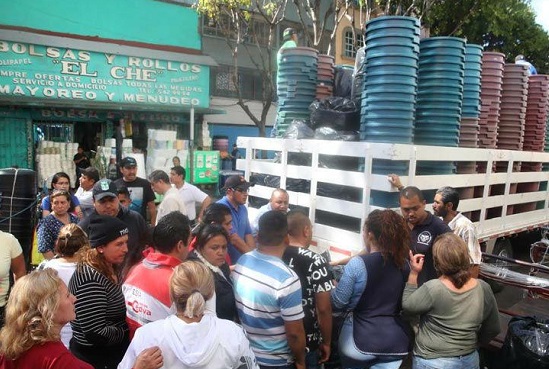 Empleados señalaron que la tarde del domingo era imposible encontrar botes de plástico porque ya había desabasto: primero se agotaron los contenedores de 80 litros, con un precio de 190 pesos, y después los botes para basura y con ruedas, con un costo de 500 pesos.