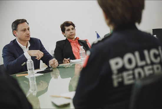 En representación del comisionado nacional de seguridad, Renato Sales Heredia, el jefe de la oficina del comisionado, Alejandro Chanes Ortiz, recibió a Jean Rodríguez, procurador general del país caribeño.