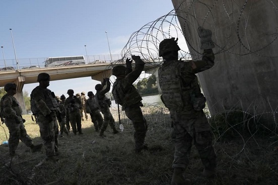 Militares de Estados Unidos colocaron alambre de púas en la parte superior del muro metálico que divide la frontera de Nogales entre Sonora y Arizona, según se observó en la zona.