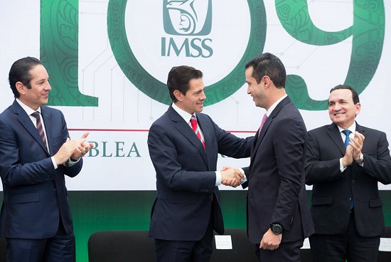 Peña Nieto reconoció que los sectores gubernamental, obrero y patronal, han trabajado y sumando esfuerzos para construir un Seguro Social eficiente, moderno, fuerte y confiable, “que les cumple a sus derechohabientes”.