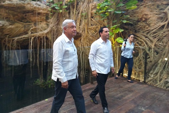 Previo al encuentro, López Obrador visitió un cenote acompañado del gobernador yucateco, Villa Dosal.