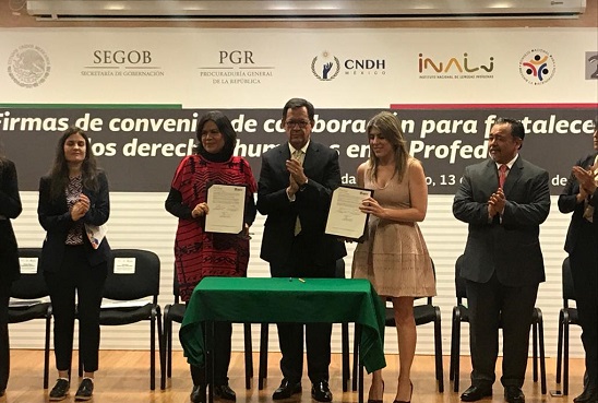 Destacó que la firma del convenio entre la Procuraduría de la Defensa del Trabajo (PROFEDET) la Comisión Nacional de Derechos Humanos (CNDH), la Procuraduría General de la República (PGR), el Consejo Nacional para Prevenir la Discriminación y la Comisión Nacional para Prevenir y Erradicar la Violencia contra las Mujeres (CONAPRED) permitirá orientar las solicitudes que realicen las personas, a través del sitio http://profedet.noip.me/; proporcionar información estadística y atender oportunamente a los usuarios que sean canalizados por el portal, entre otras actividades.