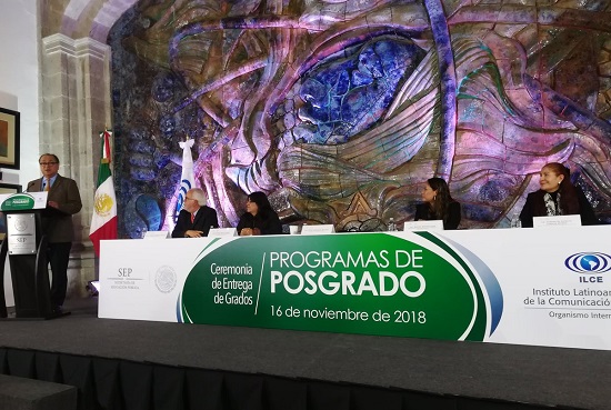 En la ceremonia de entrega de grados de maestría a graduados del Instituto Latinoamericano de la Comunicación Educativa (ILCE), Granados Roldan señaló que se debe avanzar en una buena educación en los formatos digitales, y puso como ejemplo los avances del Programa Prepa en Línea SEP, lo que permite estar permanentemente actualizados, con mayor ventajas y menores costos.