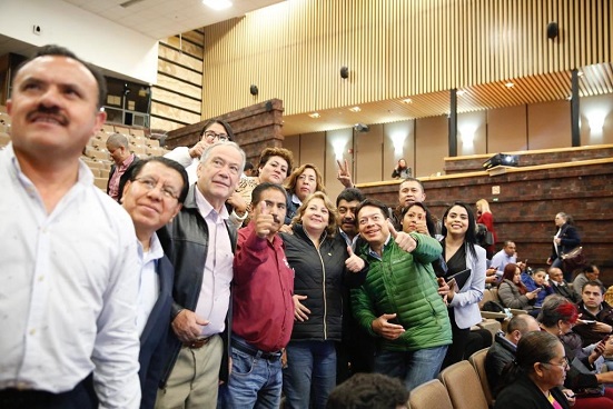 El diputado se reunió este sábado, junto con la presidenta nacional de Morena, Yeidckol Polevnsky, con legisladores locales de ese instituto político, del Partido del Trabajo (PT) y de Encuentro Social «para platicarles la agenda de la cuarta transformación».