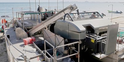 Opera en Cancún innovadora barcaza recolectora de sargazo
