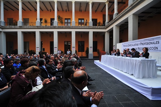 Con el propósito de atender las demandas de los damnificados del sismo del 19 de septiembre de 2017, este lunes se llevó a cabo el “Foro de Especialistas y Profesionales en torno a la Ley de Reconstrucción”, en la Antigua Escuela de Jurisprudencia, que se ubica en el Centro Histórico, donde participaron las diputadas Esperanza Villalobos, Isabela Rosales y Donaji Olivera, del Grupo Parlamentario de Morena.