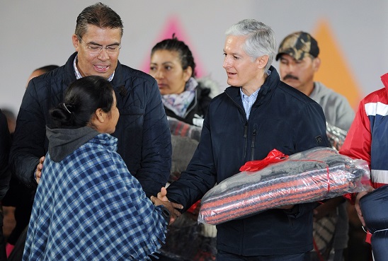 Luego de entregar paquetes invernales a personas que asistieron a este evento, junto con el Secretario General de Gobierno, Alejandro Ozuna Rivero, del Coordinador General de Protección Civil estatal, Luis Felipe Puente Espinosa, y el Delegado estatal de los Cruz Roja, Jorge Forastieri Muñoz, Alfredo Del Mazo indicó que su Gobierno trabaja en una nueva etapa para fortalecer el sistema de Protección Civil en el estado, en temas de prevención, coordinación, modernización del equipamiento y reacción ante cualquier incidente.