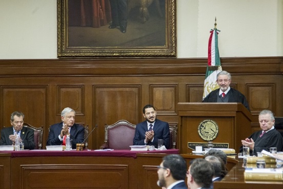 El presidente de la Suprema Corte de Justicia de la Nación (SCJN), Luis María Aguilar Morales, llamó a los Poderes Ejecutivo y Legislativo a trabajar articulados y en armonía en beneficio del pueblo y para lograr un México más fuerte, democrático, libre sin corrupción y sin simulación.