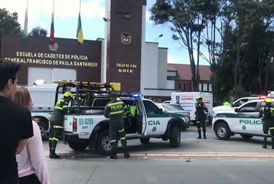 El ataque, calificado como una «acción terrorista» por el Ministerio de Defensa de Colombia, fue cometido por un hombre identificado como José Aldemar Rojas Rodríguez, quien estrelló un coche bomba cargado con 80 kilos de explosivo contra las instalaciones de la Escuela de Policía General Santander, en Bogotá.