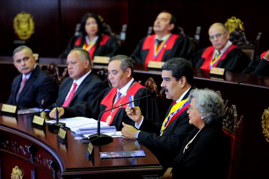 En un discurso en la sede del Tribunal Supremo de Justicia (TSJ) donde los magistrados y representantes de otros poderes le brindaron su apoyo, Maduro criticó al presidente de la Asamblea Nacional, Juan Guaidó, de autoproclamarse presidente encargado de Venezuela