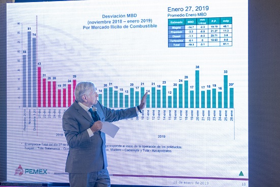 En conferencia de prensa, López Obrador detalló que en diciembre pasado, antes de iniciar las acciones contra el robo de combustible, se hurtaban 74 mil barriles diarios, y ahora se ha reducido esto «65 por ciento menos. En dinero, más de cinco mil millones de pesos de ahorro».