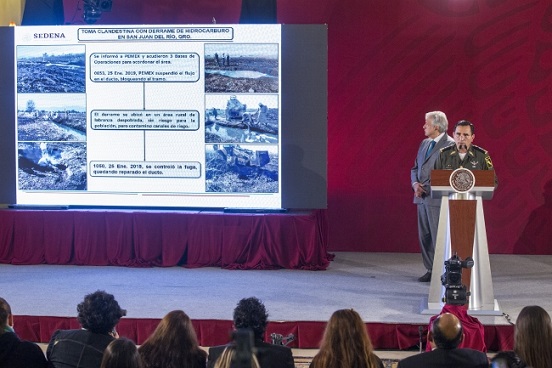 Precisó que en el combate al huachicoleo del 7 al 27 de enero han sido atendidas alrededor 600 tomas clandestinas de combustible en México.