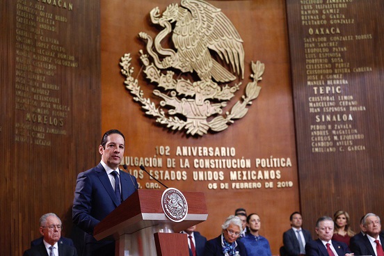En el histórico Teatro de la República, durante la ceremonia por el 102 aniversario de la promulgación de la Constitución mexicana, el mandatario estatal dejó claro que la mejor forma de honrar la Carta Magna no es evocándola, sino cumpliéndola.