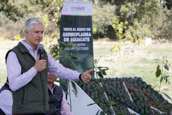 El Gobernador Alfredo Del Mazo Maza señaló que su administración impulsará la producción de aguacate, donde el objetivo es contar con la primera planta certificada de esta fruta, asegurar que esté libre de plagas, como el gusano barrenador, además de incrementar el número de toneladas de este producto.