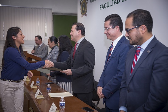 Asimismo, se entregaron reconocimientos a los mejores promedios de los programas de licenciatura y posgrado que ofrece la Facultad, a docentes que obtuvieron nuevos grados académicos y a personal administrativo con 25 y 30 años de labor.