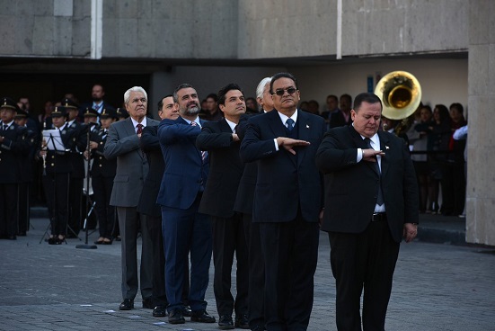 El subsecretario de Gobernación, Zoé Robledo Aburto, encabezó en la explanada del Conjunto de Bucareli, la segunda ceremonia de izamiento de Bandera y honores a la Bandera Nacional.
