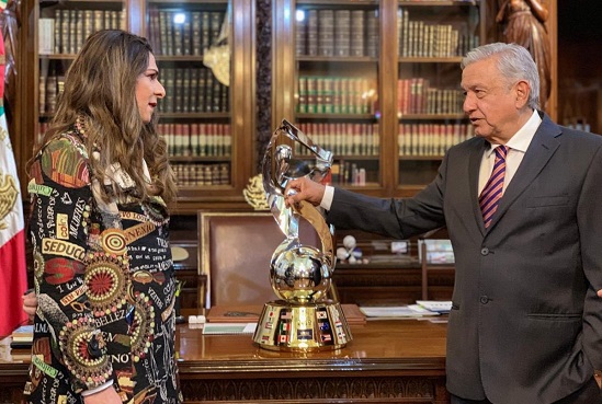 Además, pidió al presidente López Obrador ser embajador del mundo para la Confederación Mundial de Béisbol, al tiempo que le entregó una medalla a nombre de todos los beisbolistas del mundo.