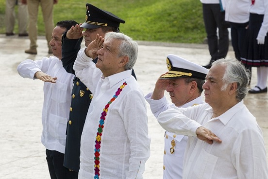 Destacó los colores de la Bandera Nacional: «El rojo es la sangre derramada, es nuestras luchas de independencia, de reforma, de revolución; el verde es la esperanza de un pueblo en un futuro mejor, el que logremos entre todos una sociedad mejor con justicia, con libertad, con democracia. El blanco significa la paz. Vamos al cambio, vamos a la transformación por el camino de la concordia, de la paz y de la tranquilidad».