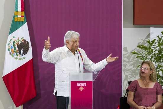 En el acto que se realizó en el Centro de Convenciones de Chetumal, López Obrador enfatizó su apoyo «al sector turístico de México, a los actores principales, a los inversionistas todas las facilidades para que puedan invertir sin burocracia, sin corrupción, sin moches, eso ya se acabó».