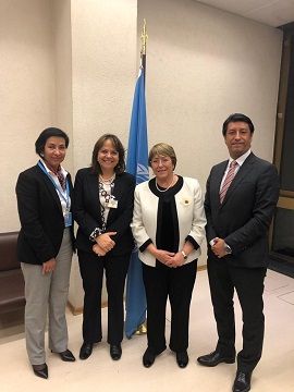 La subsecretaria para Asuntos Multilaterales y Derechos Humanos de la Secretaría de Relaciones Exteriores, Martha Delgado Peralta, se reunió el día de hoy con la alta comisionada de las Naciones Unidas para los Derechos Humanos, Michelle Bachelet, para conversar sobre derechos humanos y la formación de la Guardia Nacional.