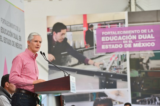 Agregó que para ello se trabaja en la consolidación del modelo dual en el Estado de México, como un programa de alto impacto que beneficie a los estudiantes y a las empresas establecidas en territorio mexiquense, para que los alumnos acudan a los centros de producción a aplicar los conocimientos y aprender nuevas tecnologías, reforzando también la enseñanza del idioma inglés.