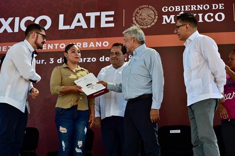 Los Cabos, Baja California Sur, 3 de marzo 2019.- Román Meyer Falcón, Secretario de Desarrollo Agrario, Territorial y Urbano y el Presidente, Andrés Manuel López Obrador, presentaron el Programa de Mejoramiento Urbano (PMU), estrategia prioritaria de esta administración, con la que se intervendrán más de 10 ciudades con altos índices de rezago urbano a través de acciones de recuperación del espacio público, infraestructura básica y acciones de vivienda. Para este primer año tiene un presupuesto de 8 mil millones de pesos.
