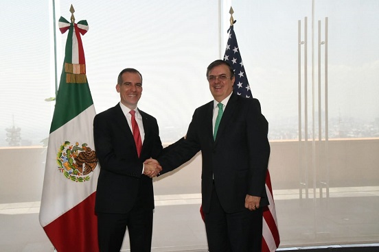 Durante el encuentro, ambos funcionarios coincidieron en la rica relación comercial y de negocios entre México y Los Ángeles, así como en la voluntad de continuar trabajando en iniciativas para estrechar y expandir los vínculos comerciales, culturales y sociales. El canciller destacó el liderazgo y la trayectoria del alcalde Garcetti en la defensa de la comunidad migrante y la promoción de su bienestar e integración. Asimismo, reconoció el apoyo del alcalde en iniciativas para difundir y fomentar el español.
