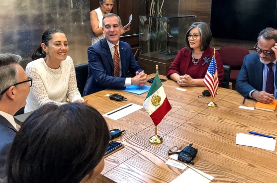 Acompañados de integrantes de sus gabinetes, ambos funcionarios aseguraron que existen diversos temas en los que podrían realizar intercambios, como es el sistema de movilidad que posee Los Ángeles y su rápido desarrollo en transporte público, así como en sistemas de alerta sísmica.
