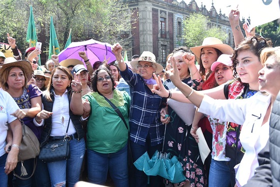 Hombro a hombro con otras mujeres, la funcionaria camina sobre avenida Bucareli hacía Reforma en esta manifestación de féminas, a quienes externó su apoyo y felicitó en el Día Internacional de la Mujer.