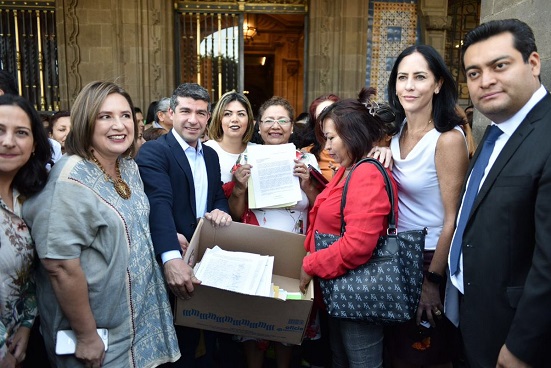 El coordinador del PAN en el Congreso capitalino, Mauricio Tabe Echartea, e integrantes del Frente por los Derechos de la Niñez, entregaron en el edificio del Ayuntamiento de la Ciudad de México, más de 23 mil firmas recolectadas, a fin de proveer de recursos económicos a las 16 alcaldías, para que éstas asuman la operación del programa de estancias infantiles.