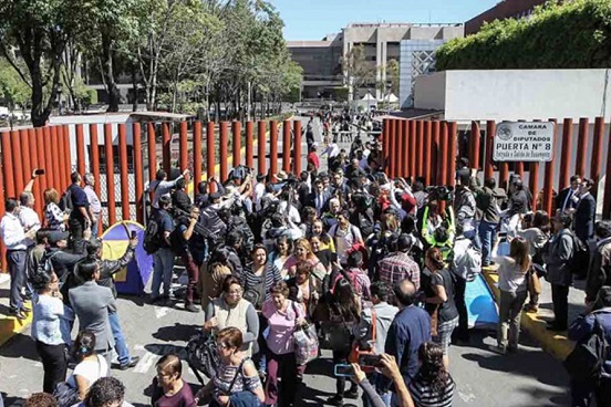 Integrantes de la Coordinadora Nacional de Trabajadores de la Educación (CNTE) impidieron la salida de los trabajadores de la Cámara de Diputados que se encontraban en el recinto legislativo lo que derivó en empujones y jaloneos.
