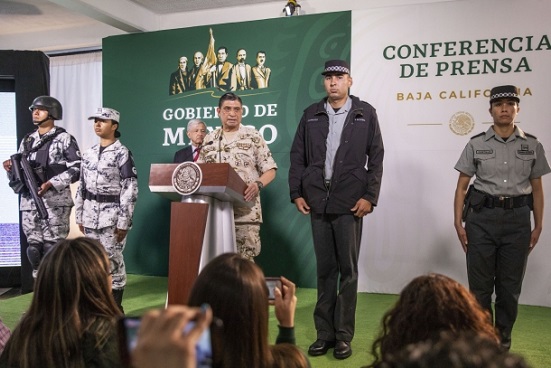 En conferencia de prensa en la II Zona Militar en Tijuana, acompañando al presidente Andrés Manuel López Obrador, indicó que los uniformes en colores gris y negro camuflados para el personal de campo, y obscuro y gris para los agentes de proximidad, llevarán un brazalete e identificadores en la espalda con las siglas GN.