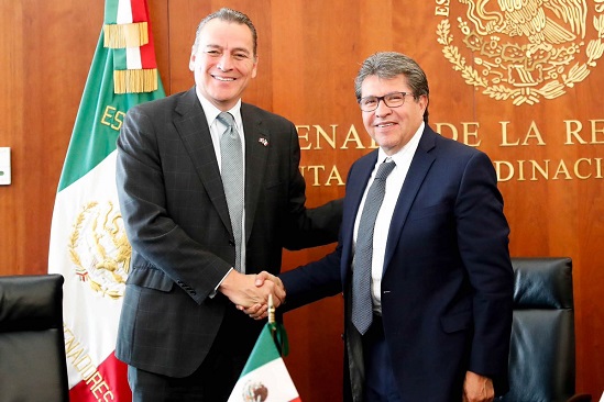 En la sede del Senado, el diplomático canadiense se reunió con el presidente de la Junta de Coordinación Política, Ricardo Monreal Ávila, para intercambiar puntos de vista sobre la relación bilateral entre los dos países, la ratificación del T-EMEC y los cambios políticos en México.